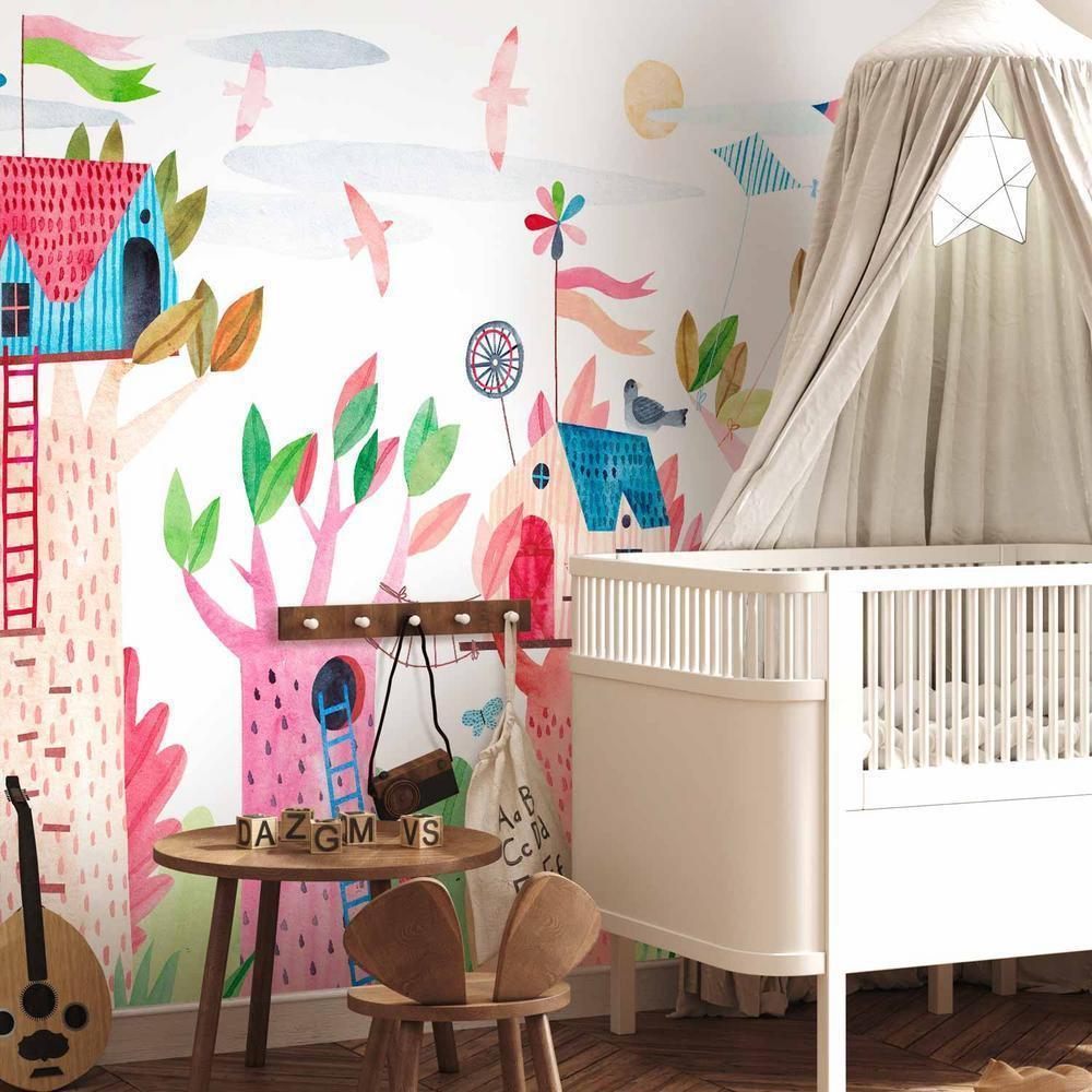 Fototapety stają się coraz bardziej popularne i z pewnością jeszcze długo będą wpisywać się w obowiązujące trendy wnętrzarskie. Wynika to m.in. z faktu, że dają spektakularne efekty, a ich montaż nie stanowi dużego problemu. Fototapeta „Fototapeta – Malowane domki na drzewie – kolorowa fantazja z latawcami dla dzieci” pozwala na całkowitą zmianę dotychczasowej aranżacji i to bez potrzeby przeprowadzania gruntownego remontu. Wystarczy odpowiednio dobrać wzór, aby stworzyć klimatyczne i eleganckie wnętrze. Nasze fototapety na wymiar to odpowiedni wybór dla każdego, komu marzy się metamorfoza domu. Z ich pomocą można bez dużego wysiłku odświeżyć dowolne pomieszczenie, a więc sypialnię, salon, pokój dziecka czy jadalnię. Fototapety ścienne są niezwykle łatwe w montażu. W porównaniu do zwykłego malowania praca nie zajmuje tak dużo czasu, można z powodzeniem wykonać ją samodzielnie. W dodatku taka dekoracja pozwala na zamaskowanie niedoskonałości ścian (np. trudnych do usunięcia plam) i uzyskanie doskonałych efektów.