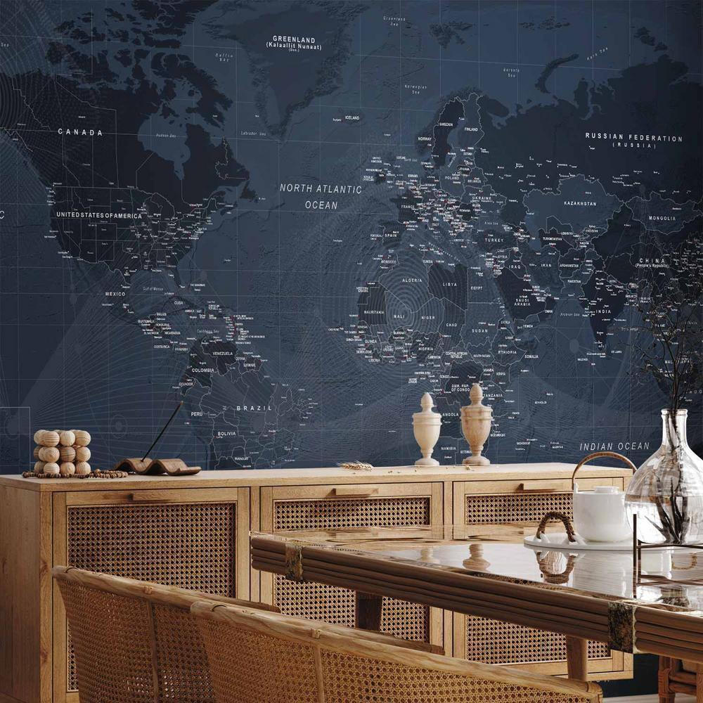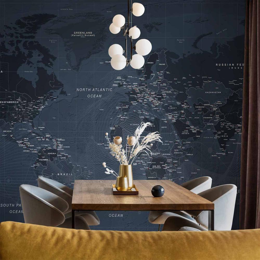 Fototapety stają się coraz bardziej popularne i z pewnością jeszcze długo będą wpisywać się w obowiązujące trendy wnętrzarskie. Wynika to m.in. z faktu, że dają spektakularne efekty, a ich montaż nie stanowi dużego problemu. Fototapeta „Fototapeta – Mapa świata w kolorze niebieskim – kontynenty z napisami po angielsku” pozwala na całkowitą zmianę dotychczasowej aranżacji i to bez potrzeby przeprowadzania gruntownego remontu. Wystarczy odpowiednio dobrać wzór, aby stworzyć klimatyczne i eleganckie wnętrze. Nasze fototapety na wymiar to odpowiedni wybór dla każdego, komu marzy się metamorfoza domu. Z ich pomocą można bez dużego wysiłku odświeżyć dowolne pomieszczenie, a więc sypialnię, salon, pokój dziecka czy jadalnię. Fototapety ścienne są niezwykle łatwe w montażu. W porównaniu do zwykłego malowania praca nie zajmuje tak dużo czasu, można z powodzeniem wykonać ją samodzielnie. W dodatku taka dekoracja pozwala na zamaskowanie niedoskonałości ścian (np. trudnych do usunięcia plam) i uzyskanie doskonałych efektów.