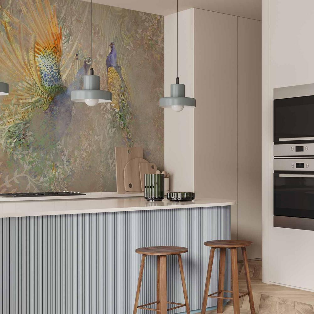 Fototapety stają się coraz bardziej popularne i z pewnością jeszcze długo będą wpisywać się w obowiązujące trendy wnętrzarskie. Wynika to m.in. z faktu, że dają spektakularne efekty, a ich montaż nie stanowi dużego problemu. Fototapeta „Fototapeta – Pawie w tańcu – motyw ptaków wśród abstrakcyjnego deseniu w ornamenty” pozwala na całkowitą zmianę dotychczasowej aranżacji i to bez potrzeby przeprowadzania gruntownego remontu. Wystarczy odpowiednio dobrać wzór, aby stworzyć klimatyczne i eleganckie wnętrze. Nasze fototapety na wymiar to odpowiedni wybór dla każdego, komu marzy się metamorfoza domu. Z ich pomocą można bez dużego wysiłku odświeżyć dowolne pomieszczenie, a więc sypialnię, salon, pokój dziecka czy jadalnię. Fototapety ścienne są niezwykle łatwe w montażu. W porównaniu do zwykłego malowania praca nie zajmuje tak dużo czasu, można z powodzeniem wykonać ją samodzielnie. W dodatku taka dekoracja pozwala na zamaskowanie niedoskonałości ścian (np. trudnych do usunięcia plam) i uzyskanie doskonałych efektów.