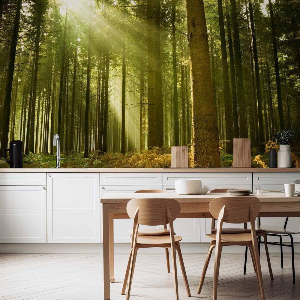 Fototapety stają się coraz bardziej popularne i z pewnością jeszcze długo będą wpisywać się w obowiązujące trendy wnętrzarskie. Wynika to m.in. z faktu, że dają spektakularne efekty, a ich montaż nie stanowi dużego problemu. Fototapeta „Fototapeta – Sosnowy las – gęste leśne poszycie w promieniach porannego słońca” pozwala na całkowitą zmianę dotychczasowej aranżacji i to bez potrzeby przeprowadzania gruntownego remontu. Wystarczy odpowiednio dobrać wzór, aby stworzyć klimatyczne i eleganckie wnętrze. Nasze fototapety na wymiar to odpowiedni wybór dla każdego, komu marzy się metamorfoza domu. Z ich pomocą można bez dużego wysiłku odświeżyć dowolne pomieszczenie, a więc sypialnię, salon, pokój dziecka czy jadalnię. Fototapety ścienne są niezwykle łatwe w montażu. W porównaniu do zwykłego malowania praca nie zajmuje tak dużo czasu, można z powodzeniem wykonać ją samodzielnie. W dodatku taka dekoracja pozwala na zamaskowanie niedoskonałości ścian (np. trudnych do usunięcia plam) i uzyskanie doskonałych efektów.