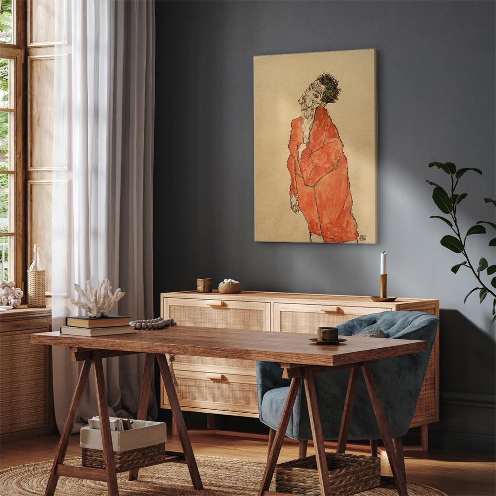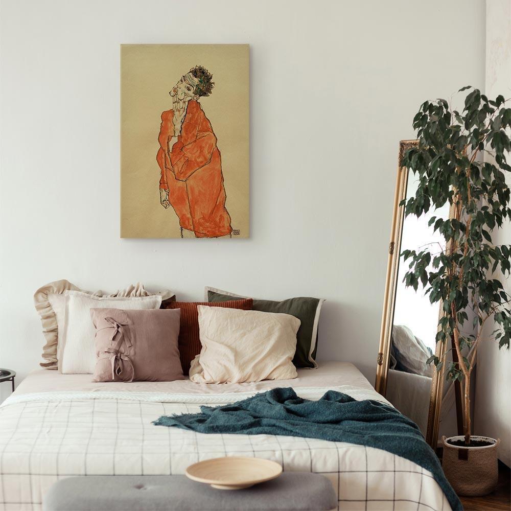 Niepowtarzalne obrazy z estetycznymi motywami są idealnym dopełnieniem eleganckiej aranżacji. Przy odrobinie kreatywności można je z łatwością dopasować do wnętrza urządzonego w każdym stylu. Obraz na płótnie „Obraz – Egon Schiele – Autoportret (Mężczyzna w pomarańczowej koszuli)” to unikalny element dekoracyjny który jest niemal uniwersalny. Przypadnie do gustu każdemu, kto poszukuje oryginalnych ozdób, aby dopełnić swoją aranżację. Umieść go w swoim wnętrzu, a przekonasz się, że jest już kompletne i nie potrzebujesz już innych dodatków. Nie musisz się obawiać o jakość i wygląd swojej dekoracji. Dostępne w ofercie obrazy na płótnie wiernie odwzorowują detale. Odpowiednio dostosowana rozdzielczość druku gwarantuje intensywność kolorów oraz ostrość prezentowanego motywu. Tego typu produkty to doskonałe rozwiązanie, jeśli wciąż narzekasz na puste miejsce na ścianie i zastanawiasz się, jak je wypełnić. To stylowy element dekoracyjny, dzięki któremu wnętrze staje się wyjątkowo przytulne.