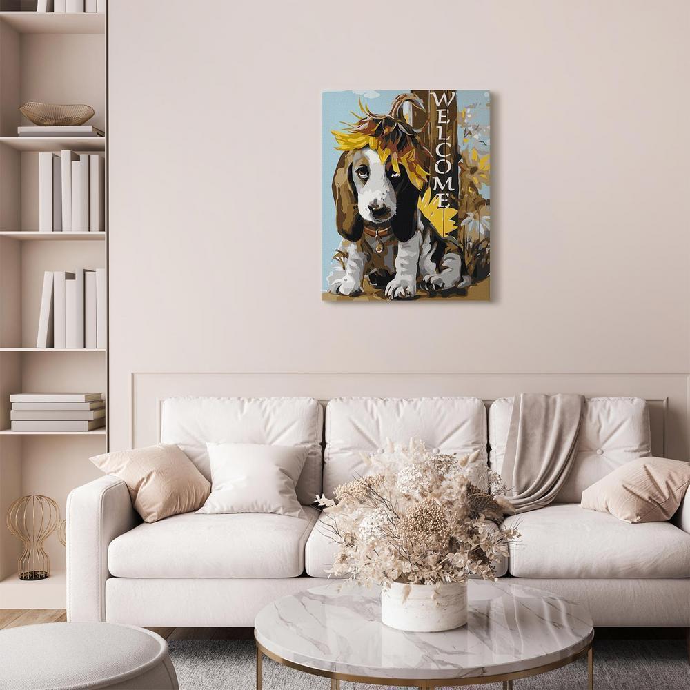 Obraz do samodzielnego malowania - Pies i słonecznikiObraz do samodzielnego malowania – Pies i słoneczniki