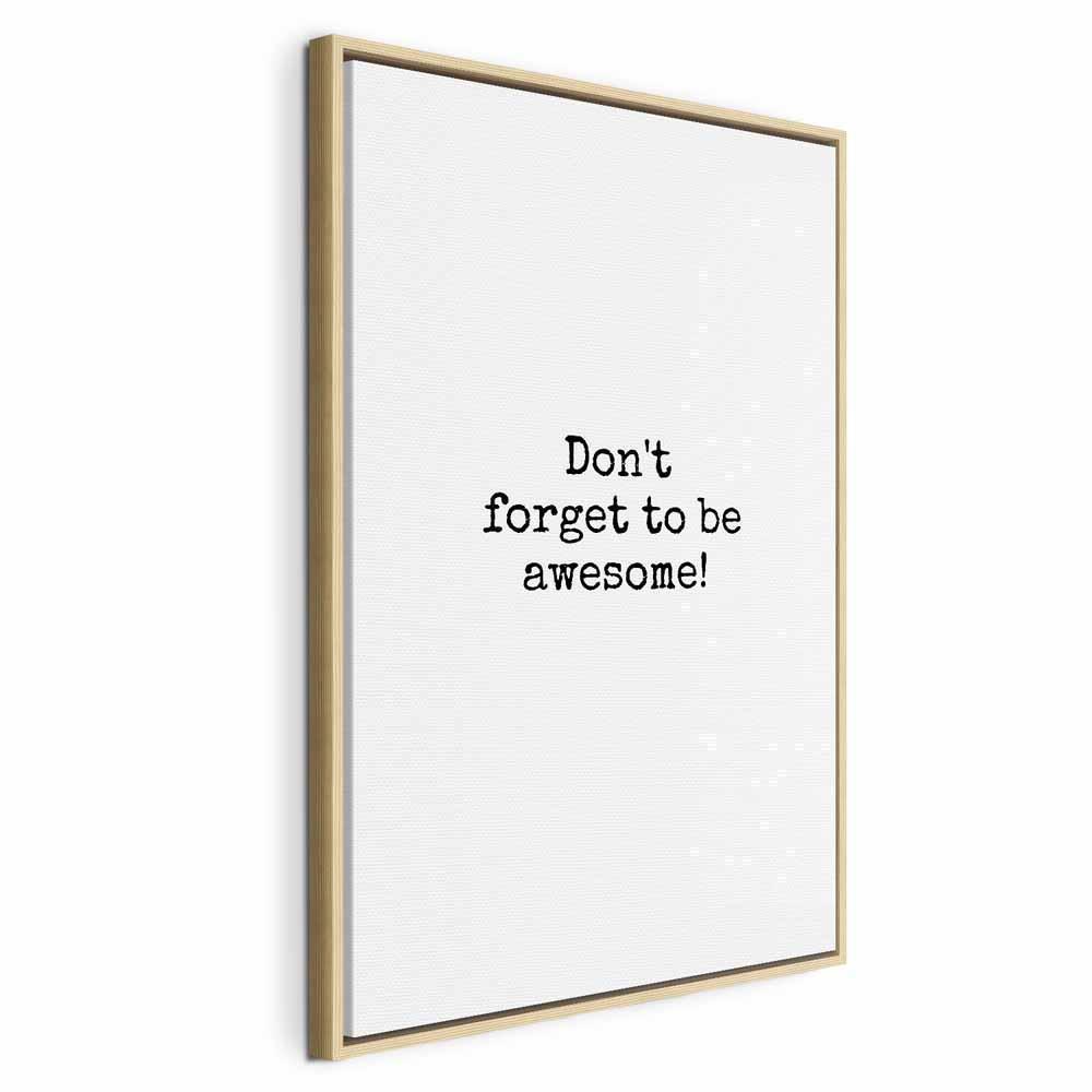 Niepowtarzalne obrazy z estetycznymi motywami są idealnym dopełnieniem eleganckiej aranżacji. Przy odrobinie kreatywności można je z łatwością dopasować do wnętrza urządzonego w każdym stylu. Obraz na płótnie „Obraz – Don’t Forget to Be Awesome! (1-częściowy) pionowy” to unikalny element dekoracyjny który jest niemal uniwersalny. Przypadnie do gustu każdemu, kto poszukuje oryginalnych ozdób, aby dopełnić swoją aranżację. Umieść go w swoim wnętrzu, a przekonasz się, że jest już kompletne i nie potrzebujesz już innych dodatków. Nie musisz się obawiać o jakość i wygląd swojej dekoracji. Dostępne w ofercie obrazy na płótnie wiernie odwzorowują detale. Odpowiednio dostosowana rozdzielczość druku gwarantuje intensywność kolorów oraz ostrość prezentowanego motywu. Tego typu produkty to doskonałe rozwiązanie, jeśli wciąż narzekasz na puste miejsce na ścianie i zastanawiasz się, jak je wypełnić. To stylowy element dekoracyjny, dzięki któremu wnętrze staje się wyjątkowo przytulne.