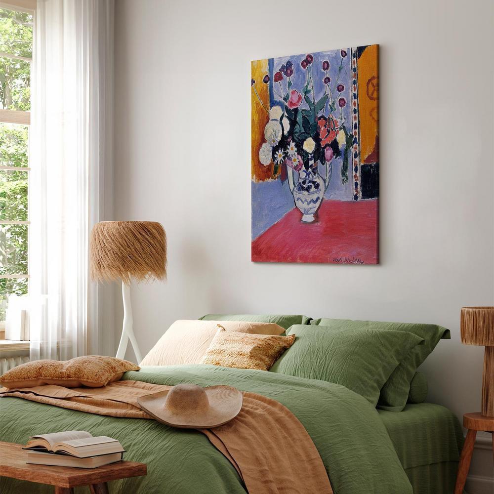 Niepowtarzalne obrazy z estetycznymi motywami są idealnym dopełnieniem eleganckiej aranżacji. Przy odrobinie kreatywności można je z łatwością dopasować do wnętrza urządzonego w każdym stylu. Obraz na płótnie „Obraz – Henri Matisse – Bukiet w wazonie z dwoma uchwytami” to unikalny element dekoracyjny który jest niemal uniwersalny. Przypadnie do gustu każdemu, kto poszukuje oryginalnych ozdób, aby dopełnić swoją aranżację. Umieść go w swoim wnętrzu, a przekonasz się, że jest już kompletne i nie potrzebujesz już innych dodatków. Nie musisz się obawiać o jakość i wygląd swojej dekoracji. Dostępne w ofercie obrazy na płótnie wiernie odwzorowują detale. Odpowiednio dostosowana rozdzielczość druku gwarantuje intensywność kolorów oraz ostrość prezentowanego motywu. Tego typu produkty to doskonałe rozwiązanie, jeśli wciąż narzekasz na puste miejsce na ścianie i zastanawiasz się, jak je wypełnić. To stylowy element dekoracyjny, dzięki któremu wnętrze staje się wyjątkowo przytulne.