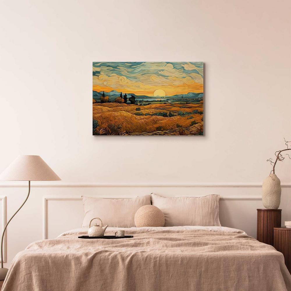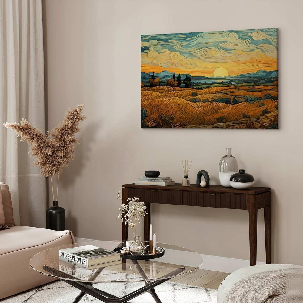 Niepowtarzalne obrazy z estetycznymi motywami są idealnym dopełnieniem eleganckiej aranżacji. Przy odrobinie kreatywności można je z łatwością dopasować do wnętrza urządzonego w każdym stylu. Obraz na płótnie „Obraz – Impresjonistyczne łany – namalowany złoty krajobraz z łanami zboża” to unikalny element dekoracyjny który jest niemal uniwersalny. Przypadnie do gustu każdemu, kto poszukuje oryginalnych ozdób, aby dopełnić swoją aranżację. Umieść go w swoim wnętrzu, a przekonasz się, że jest już kompletne i nie potrzebujesz już innych dodatków. Nie musisz się obawiać o jakość i wygląd swojej dekoracji. Dostępne w ofercie obrazy na płótnie wiernie odwzorowują detale. Odpowiednio dostosowana rozdzielczość druku gwarantuje intensywność kolorów oraz ostrość prezentowanego motywu. Tego typu produkty to doskonałe rozwiązanie, jeśli wciąż narzekasz na puste miejsce na ścianie i zastanawiasz się, jak je wypełnić. To stylowy element dekoracyjny, dzięki któremu wnętrze staje się wyjątkowo przytulne.