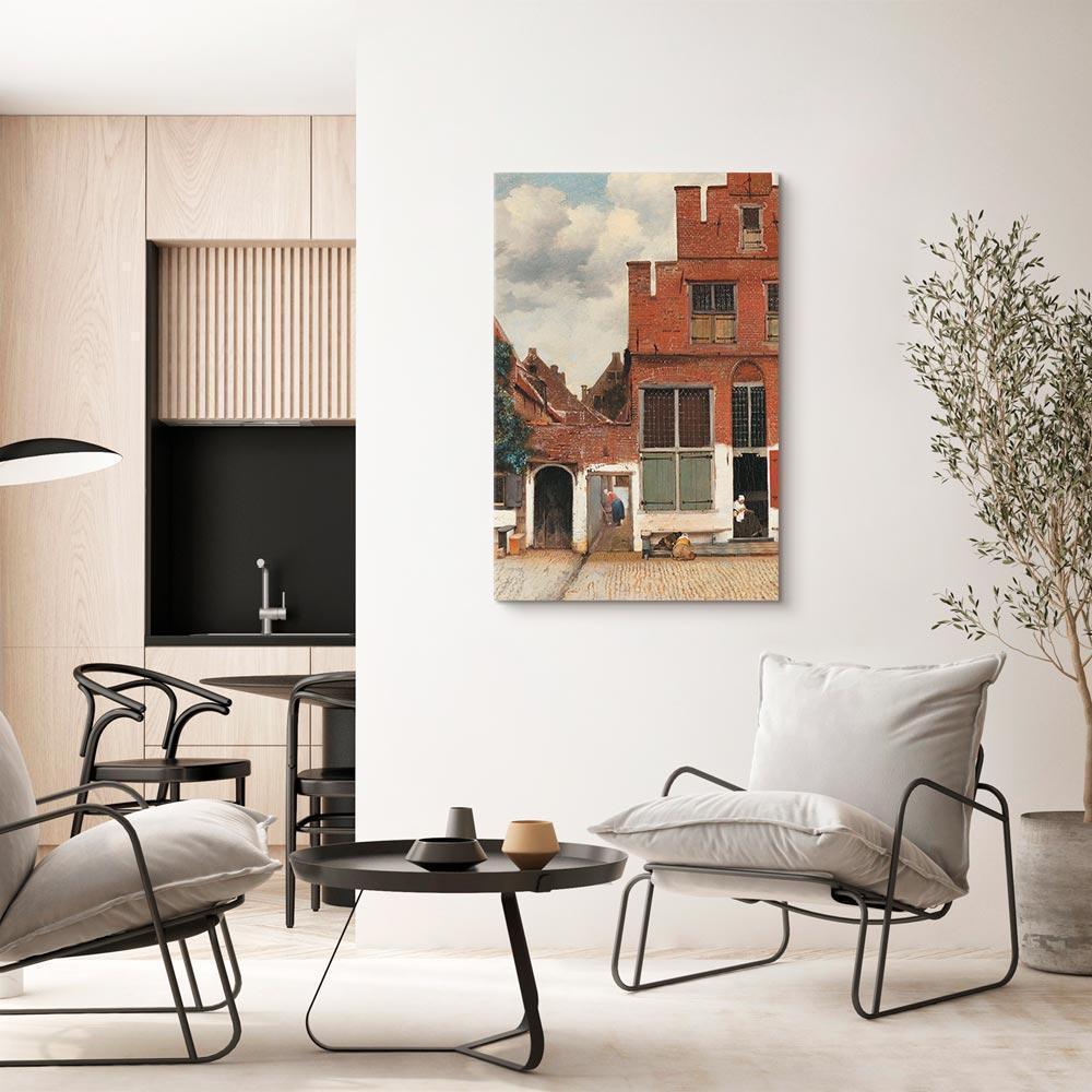 Niepowtarzalne obrazy z estetycznymi motywami są idealnym dopełnieniem eleganckiej aranżacji. Przy odrobinie kreatywności można je z łatwością dopasować do wnętrza urządzonego w każdym stylu. Obraz na płótnie „Obraz – Jan Vermeer – Uliczka” to unikalny element dekoracyjny który jest niemal uniwersalny. Przypadnie do gustu każdemu, kto poszukuje oryginalnych ozdób, aby dopełnić swoją aranżację. Umieść go w swoim wnętrzu, a przekonasz się, że jest już kompletne i nie potrzebujesz już innych dodatków. Nie musisz się obawiać o jakość i wygląd swojej dekoracji. Dostępne w ofercie obrazy na płótnie wiernie odwzorowują detale. Odpowiednio dostosowana rozdzielczość druku gwarantuje intensywność kolorów oraz ostrość prezentowanego motywu. Tego typu produkty to doskonałe rozwiązanie, jeśli wciąż narzekasz na puste miejsce na ścianie i zastanawiasz się, jak je wypełnić. To stylowy element dekoracyjny, dzięki któremu wnętrze staje się wyjątkowo przytulne.