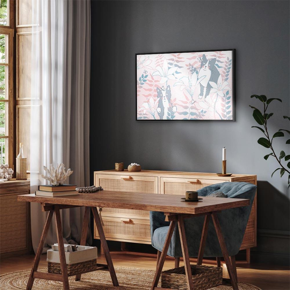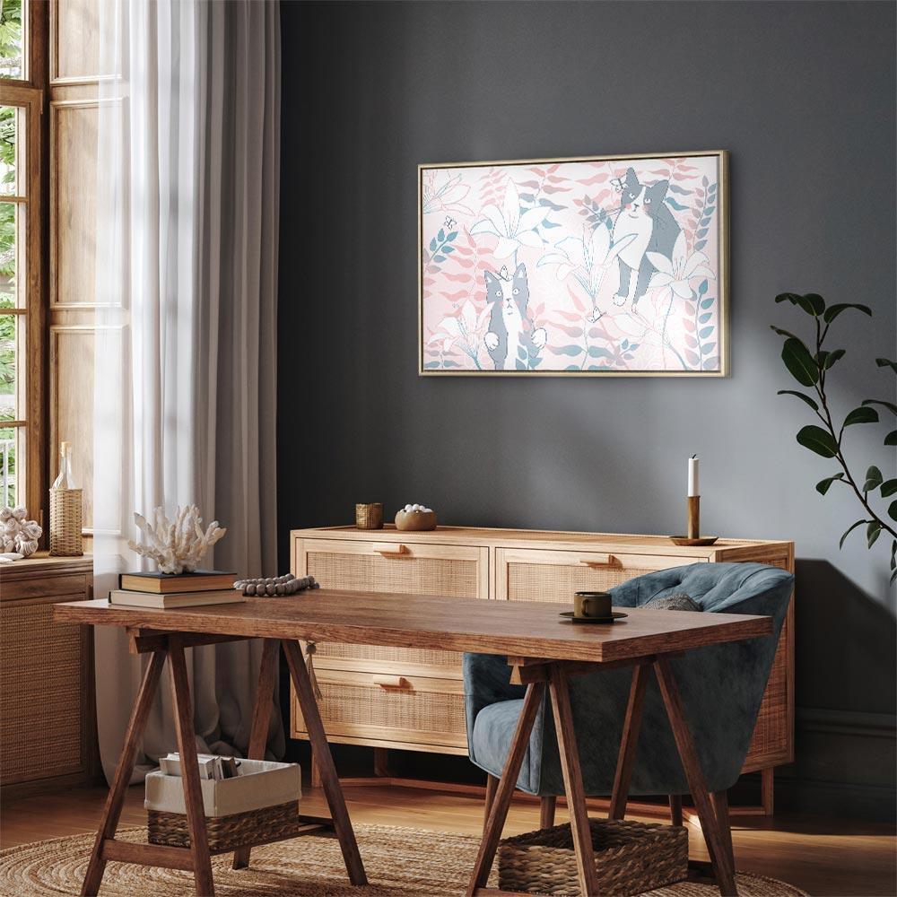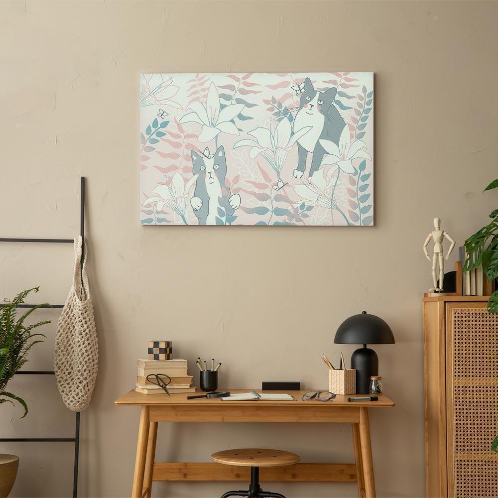 Niepowtarzalne obrazy z estetycznymi motywami są idealnym dopełnieniem eleganckiej aranżacji. Przy odrobinie kreatywności można je z łatwością dopasować do wnętrza urządzonego w każdym stylu. Obraz na płótnie „Obraz – Kocie sprawy (1-częściowy) szeroki – drugi wariant” to unikalny element dekoracyjny który jest niemal uniwersalny. Przypadnie do gustu każdemu, kto poszukuje oryginalnych ozdób, aby dopełnić swoją aranżację. Umieść go w swoim wnętrzu, a przekonasz się, że jest już kompletne i nie potrzebujesz już innych dodatków. Nie musisz się obawiać o jakość i wygląd swojej dekoracji. Dostępne w ofercie obrazy na płótnie wiernie odwzorowują detale. Odpowiednio dostosowana rozdzielczość druku gwarantuje intensywność kolorów oraz ostrość prezentowanego motywu. Tego typu produkty to doskonałe rozwiązanie, jeśli wciąż narzekasz na puste miejsce na ścianie i zastanawiasz się, jak je wypełnić. To stylowy element dekoracyjny, dzięki któremu wnętrze staje się wyjątkowo przytulne.