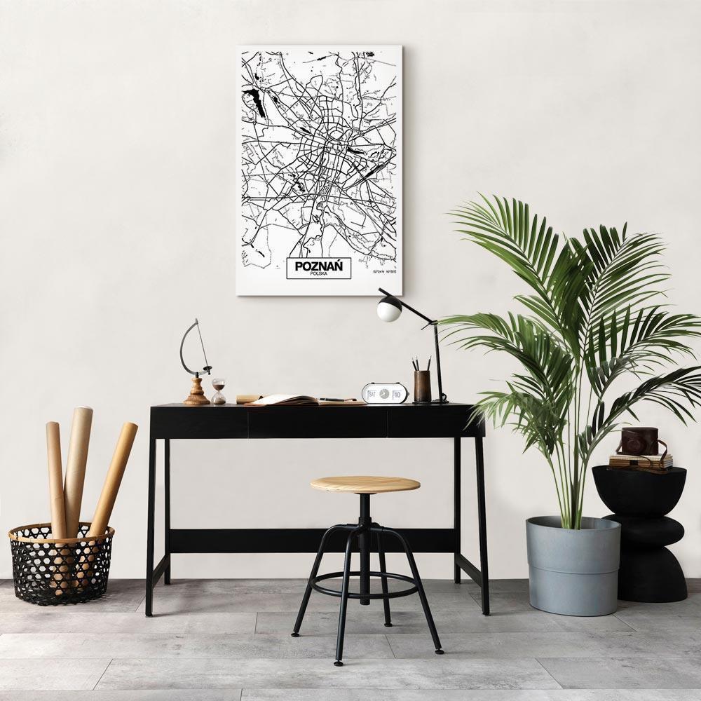 Niepowtarzalne obrazy z estetycznymi motywami są idealnym dopełnieniem eleganckiej aranżacji. Przy odrobinie kreatywności można je z łatwością dopasować do wnętrza urządzonego w każdym stylu. Obraz na płótnie „Obraz – Mapa miasta: Poznań (1-częściowy) pionowy” to unikalny element dekoracyjny który jest niemal uniwersalny. Przypadnie do gustu każdemu, kto poszukuje oryginalnych ozdób, aby dopełnić swoją aranżację. Umieść go w swoim wnętrzu, a przekonasz się, że jest już kompletne i nie potrzebujesz już innych dodatków. Nie musisz się obawiać o jakość i wygląd swojej dekoracji. Dostępne w ofercie obrazy na płótnie wiernie odwzorowują detale. Odpowiednio dostosowana rozdzielczość druku gwarantuje intensywność kolorów oraz ostrość prezentowanego motywu. Tego typu produkty to doskonałe rozwiązanie, jeśli wciąż narzekasz na puste miejsce na ścianie i zastanawiasz się, jak je wypełnić. To stylowy element dekoracyjny, dzięki któremu wnętrze staje się wyjątkowo przytulne.