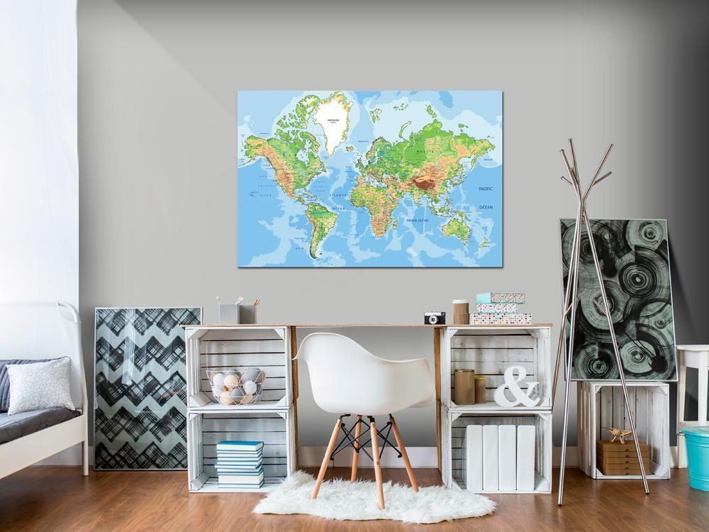 Obraz na korku „Obraz na korku – Geografia świata [Mapa korkowa]” to produkt dla osób poszukujących oryginalnych ozdób na ścianę. Ekologiczny materiał i ciekawy wzór sprawiają, że zwykła tablica korkowa zmienia się w stylowy dodatek, który możesz wykorzystać w rozmaity sposób. Do obrazów na korku można przypinać pinezki, zaznaczać odwiedzone miejsca na mapie lub doczepiać notatki. Obraz na korku „Obraz na korku – Geografia świata [Mapa korkowa]” jest o wiele lżejszy od tradycyjnych dekoracji ściennych. Dzięki temu ozdobne tablice korkowe mogą zawisnąć w dowolnym miejscu w Twoim mieszkaniu bądź biurze. Płótno z wydrukiem nakładane jest na płytę korkową. Dzięki temu nadruk cechuje się wyrazistymi kolorami i oddaje najdrobniejsze detale. Przypnij do niego pinezki lub notatki i stwórz swój indywidualny wzór na swojej ścianie!