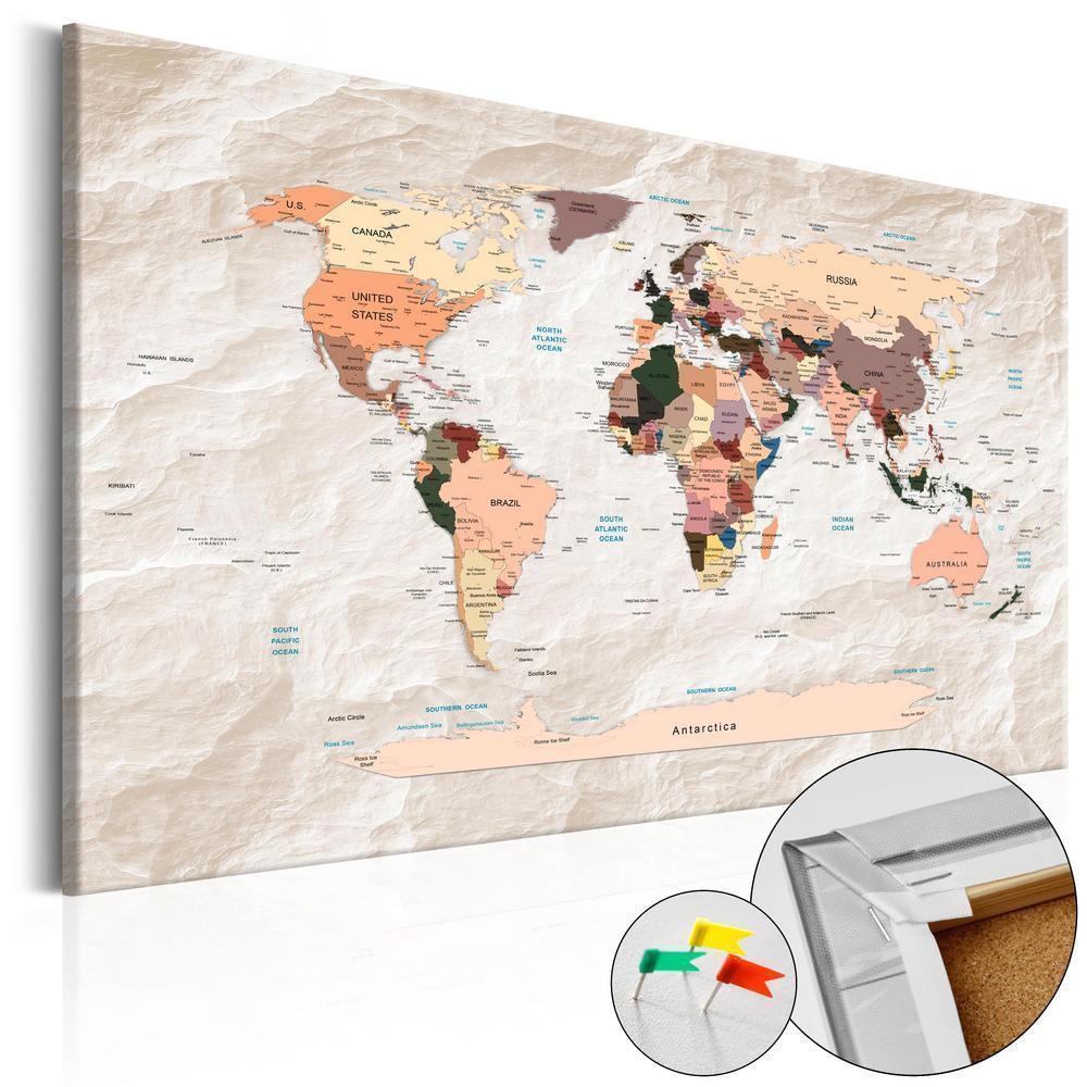 Obraz na korku „Obraz na korku – Kamienne oceany [Mapa korkowa]” to produkt dla osób poszukujących oryginalnych ozdób na ścianę. Ekologiczny materiał i ciekawy wzór sprawiają, że zwykła tablica korkowa zmienia się w stylowy dodatek, który możesz wykorzystać w rozmaity sposób. Do obrazów na korku można przypinać pinezki, zaznaczać odwiedzone miejsca na mapie lub doczepiać notatki. Obraz na korku „Obraz na korku – Kamienne oceany [Mapa korkowa]” jest o wiele lżejszy od tradycyjnych dekoracji ściennych. Dzięki temu ozdobne tablice korkowe mogą zawisnąć w dowolnym miejscu w Twoim mieszkaniu bądź biurze. Płótno z wydrukiem nakładane jest na płytę korkową. Dzięki temu nadruk cechuje się wyrazistymi kolorami i oddaje najdrobniejsze detale. Przypnij do niego pinezki lub notatki i stwórz swój indywidualny wzór na swojej ścianie!