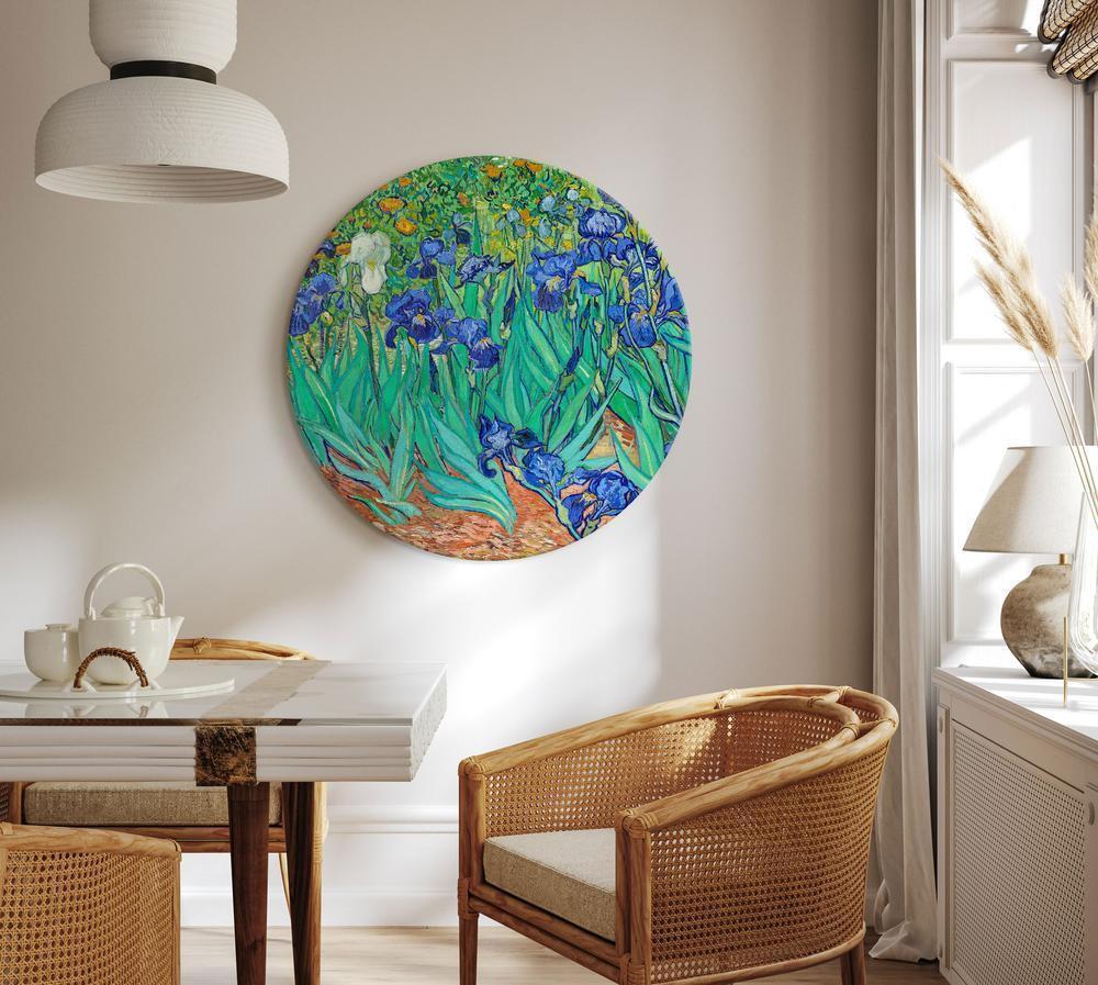 Obraz okrągły na płótnie to nowoczesna dekoracja idealnie wpisująca się w najnowsze trendy wnętrzarskie, wzbogacająca zarówno tradycyjnie urządzone pomieszczenia, jak i nowoczesne domy i biura. Metamorfoza jest na wyciągnięcie ręki! Niezależnie od tego, czy chcemy odmienić wnętrze naszego mieszkania – salon, sypialnię, domowe biuro czy pokój nastolatka, czy też chcemy udekorować biuro, poczekalnię, kawiarnię, salon kosmetyczny czy inną przestrzeń w miejscu użyteczności publicznej, okrągły obraz „Obraz okrągły – Vincent van Gogh – Irysy” wniesie nową jakość do wnętrza i przełamie monotonię. Obrazy okrągłe na płótnie z naszej oferty pasują do różnych aranżacji i stylów pomieszczeń. wśród których znajdują się propozycje odpowiednie do wnętrz glamour, boho, vintage, industrialnych i wielu innych. Jeżeli szukasz tradycyjnej dekoracji w nowoczesnym wydaniu, obraz w kształcie koła jest propozycją dla Ciebie!