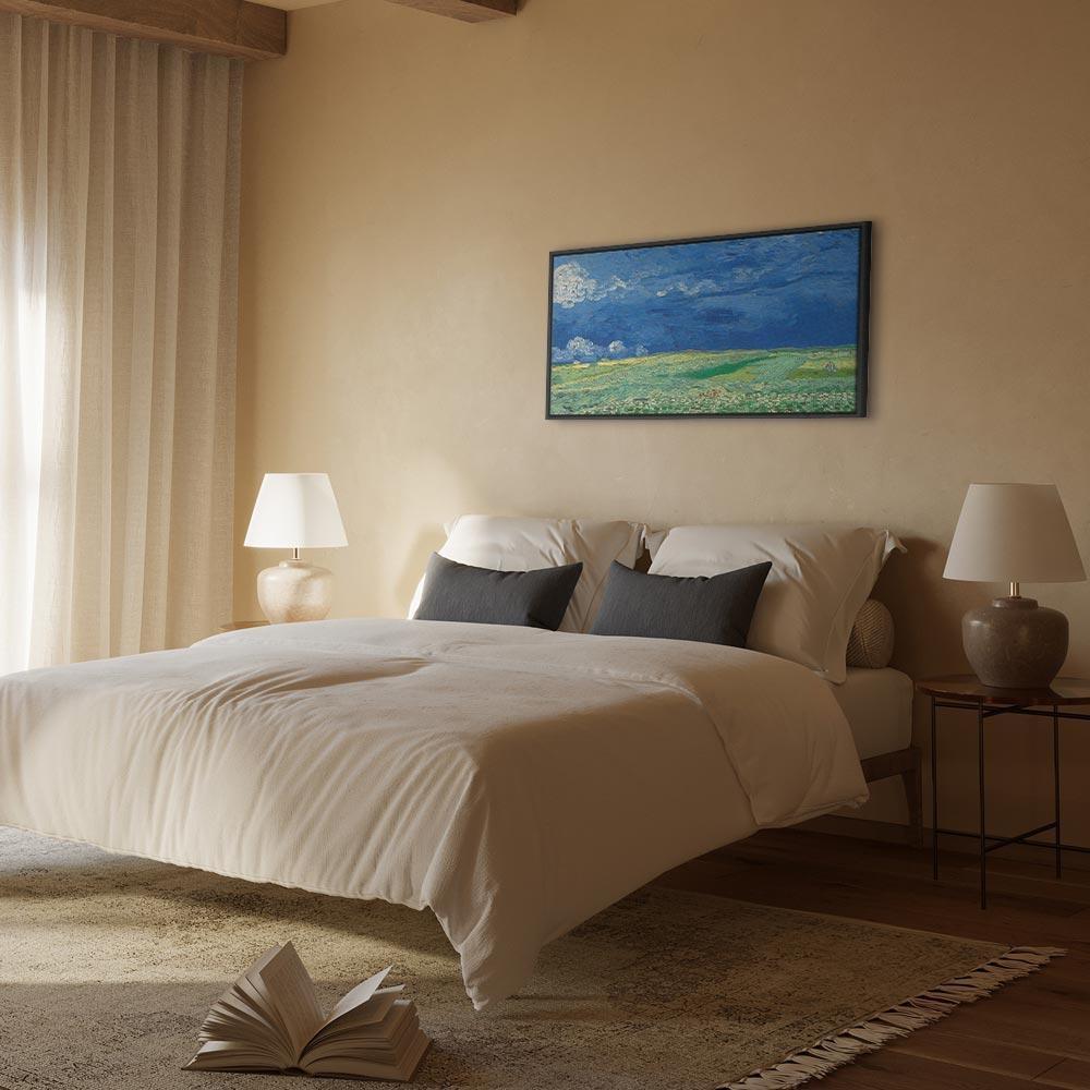 Niepowtarzalne obrazy z estetycznymi motywami są idealnym dopełnieniem eleganckiej aranżacji. Przy odrobinie kreatywności można je z łatwością dopasować do wnętrza urządzonego w każdym stylu. Obraz na płótnie „Obraz – Vincent van Gogh – Pole pszenicy przed burzą” to unikalny element dekoracyjny który jest niemal uniwersalny. Przypadnie do gustu każdemu, kto poszukuje oryginalnych ozdób, aby dopełnić swoją aranżację. Umieść go w swoim wnętrzu, a przekonasz się, że jest już kompletne i nie potrzebujesz już innych dodatków. Nie musisz się obawiać o jakość i wygląd swojej dekoracji. Dostępne w ofercie obrazy na płótnie wiernie odwzorowują detale. Odpowiednio dostosowana rozdzielczość druku gwarantuje intensywność kolorów oraz ostrość prezentowanego motywu. Tego typu produkty to doskonałe rozwiązanie, jeśli wciąż narzekasz na puste miejsce na ścianie i zastanawiasz się, jak je wypełnić. To stylowy element dekoracyjny, dzięki któremu wnętrze staje się wyjątkowo przytulne.