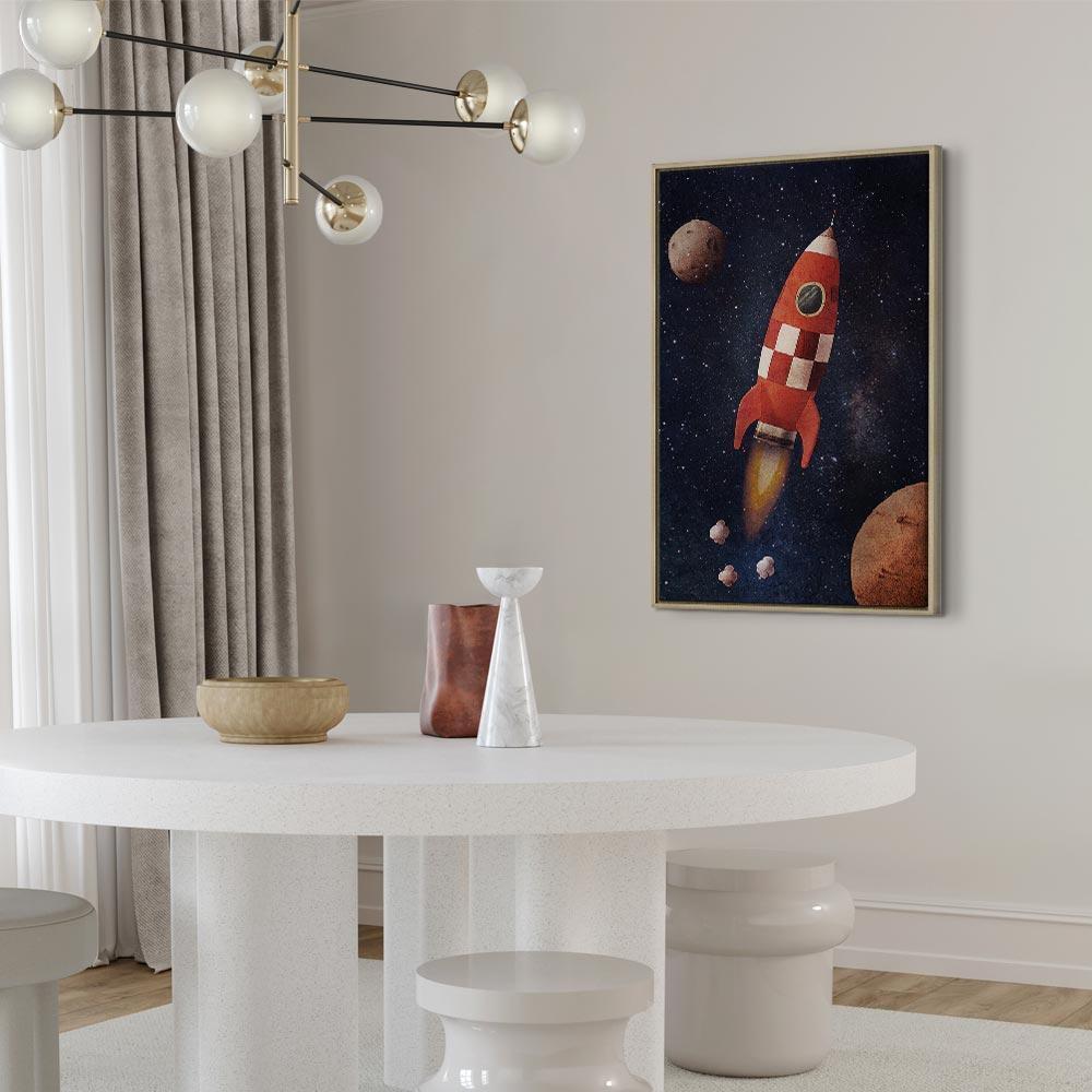 Niepowtarzalne obrazy z estetycznymi motywami są idealnym dopełnieniem eleganckiej aranżacji. Przy odrobinie kreatywności można je z łatwością dopasować do wnętrza urządzonego w każdym stylu. Obraz na płótnie „Obraz – Rakietą w nieznane (1-częściowy) pionowy” to unikalny element dekoracyjny który jest niemal uniwersalny. Przypadnie do gustu każdemu, kto poszukuje oryginalnych ozdób, aby dopełnić swoją aranżację. Umieść go w swoim wnętrzu, a przekonasz się, że jest już kompletne i nie potrzebujesz już innych dodatków. Nie musisz się obawiać o jakość i wygląd swojej dekoracji. Dostępne w ofercie obrazy na płótnie wiernie odwzorowują detale. Odpowiednio dostosowana rozdzielczość druku gwarantuje intensywność kolorów oraz ostrość prezentowanego motywu. Tego typu produkty to doskonałe rozwiązanie, jeśli wciąż narzekasz na puste miejsce na ścianie i zastanawiasz się, jak je wypełnić. To stylowy element dekoracyjny, dzięki któremu wnętrze staje się wyjątkowo przytulne.