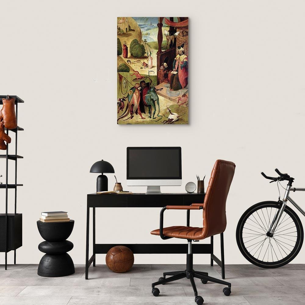 Niepowtarzalne obrazy z estetycznymi motywami są idealnym dopełnieniem eleganckiej aranżacji. Przy odrobinie kreatywności można je z łatwością dopasować do wnętrza urządzonego w każdym stylu. Obraz na płótnie „Obraz – Hieronim Bosch – Święty Jakub i czarnoksiężnik” to unikalny element dekoracyjny który jest niemal uniwersalny. Przypadnie do gustu każdemu, kto poszukuje oryginalnych ozdób, aby dopełnić swoją aranżację. Umieść go w swoim wnętrzu, a przekonasz się, że jest już kompletne i nie potrzebujesz już innych dodatków. Nie musisz się obawiać o jakość i wygląd swojej dekoracji. Dostępne w ofercie obrazy na płótnie wiernie odwzorowują detale. Odpowiednio dostosowana rozdzielczość druku gwarantuje intensywność kolorów oraz ostrość prezentowanego motywu. Tego typu produkty to doskonałe rozwiązanie, jeśli wciąż narzekasz na puste miejsce na ścianie i zastanawiasz się, jak je wypełnić. To stylowy element dekoracyjny, dzięki któremu wnętrze staje się wyjątkowo przytulne. Obrazy