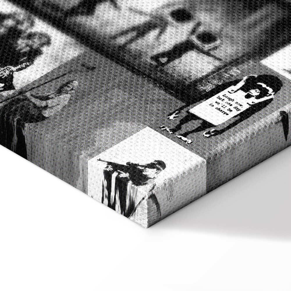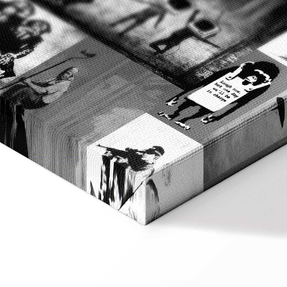 Uważasz, że to, czego brakuje w Twoim domu, to właśnie obrazy drukowane na płótnie ? Jeśli tak, otrzymane od nas zamówienie spełni Twoje oczekiwania w 100%. Stylowy oraz odpowiednio dopasowany obraz na płótnie „Obraz – Street Art: Banksy” może z powodzeniem zająć centralne miejsce w pomieszczeniu. Będzie przykuwał uwagę, a jednocześnie idealnie współgrał z pozostałymi elementami wyposażenia. Takie dekoracje ścienne stworzą piękny duet z niewielkim stolikiem kawowym, delikatną toaletką, Twoim ulubionym fotelem czy innym ważnym meblem w pokoju. Wykorzystasz je tak, jak zechcesz, tworząc niepowtarzalną aranżację. Oferujemy obrazy drukowane na płótnie z zadrukowanymi bokami. Nie potrzebujesz więc dodatkowej ramy, to dekoracje gotowe do zawieszenia. Bez względu na to, na jaki format się zdecydujesz, wszystkie szczegóły będą odpowiednio odtworzone, a kolory głębokie i przyciągające wzrok.