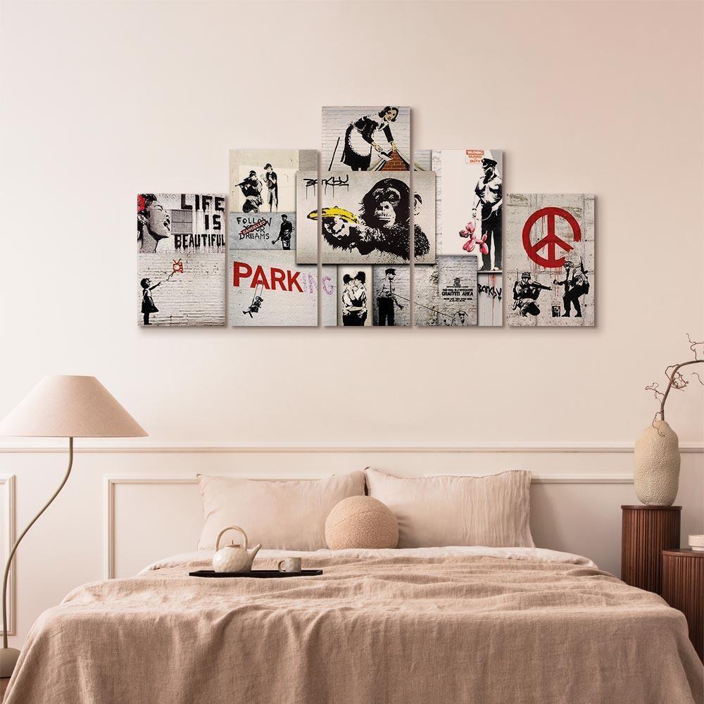 Niepowtarzalne obrazy z estetycznymi motywami są idealnym dopełnieniem eleganckiej aranżacji. Przy odrobinie kreatywności można je z łatwością dopasować do wnętrza urządzonego w każdym stylu. Obraz na płótnie „Obraz – Street Crimes: Banksy Art” to unikalny element dekoracyjny który jest niemal uniwersalny. Przypadnie do gustu każdemu, kto poszukuje oryginalnych ozdób, aby dopełnić swoją aranżację. Umieść go w swoim wnętrzu, a przekonasz się, że jest już kompletne i nie potrzebujesz już innych dodatków. Nie musisz się obawiać o jakość i wygląd swojej dekoracji. Dostępne w ofercie obrazy na płótnie wiernie odwzorowują detale. Odpowiednio dostosowana rozdzielczość druku gwarantuje intensywność kolorów oraz ostrość prezentowanego motywu. Tego typu produkty to doskonałe rozwiązanie, jeśli wciąż narzekasz na puste miejsce na ścianie i zastanawiasz się, jak je wypełnić. To stylowy element dekoracyjny, dzięki któremu wnętrze staje się wyjątkowo przytulne.