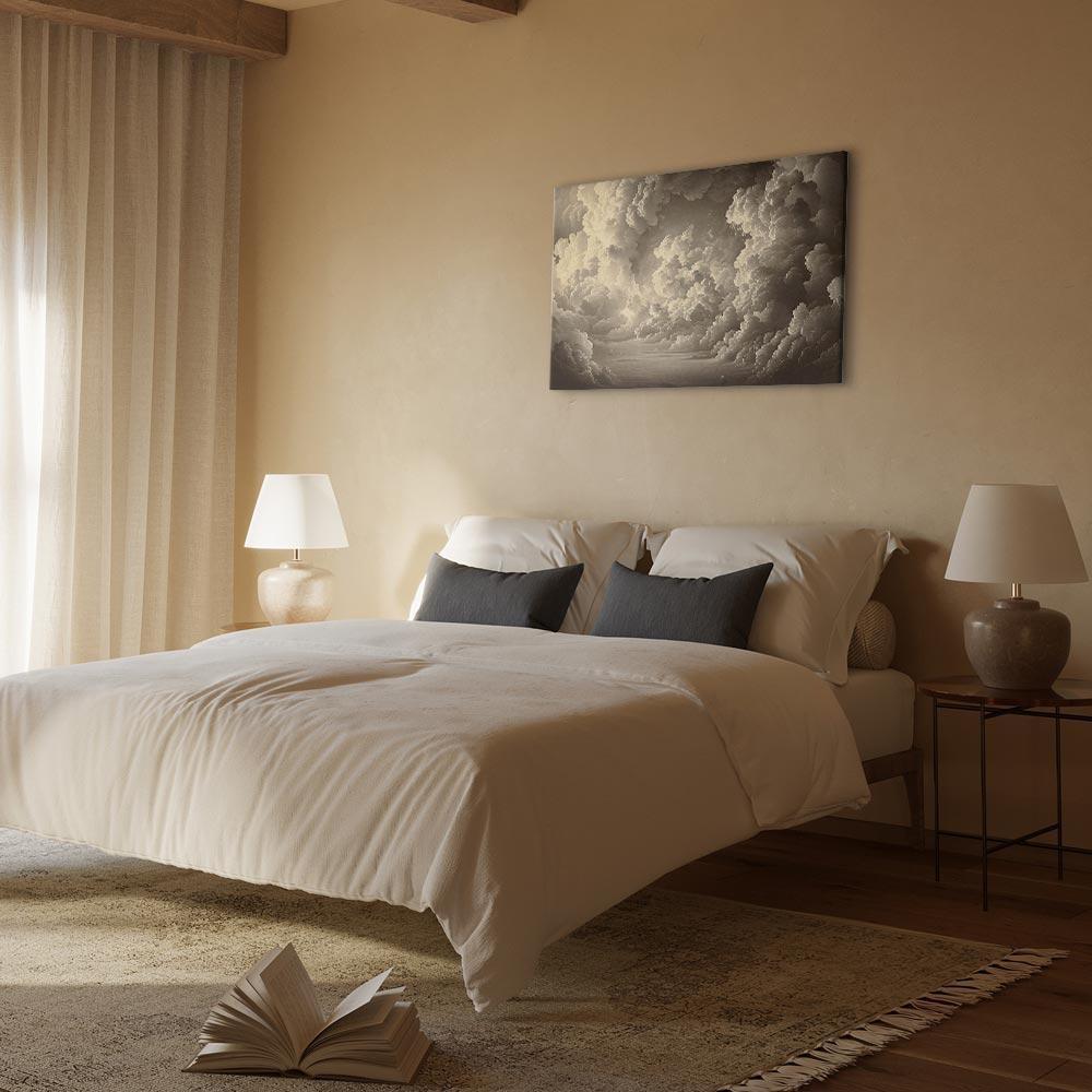 Niepowtarzalne obrazy z estetycznymi motywami są idealnym dopełnieniem eleganckiej aranżacji. Przy odrobinie kreatywności można je z łatwością dopasować do wnętrza urządzonego w każdym stylu. Obraz na płótnie „Obraz – Szept rozświetlonych chmur: Miękka gra światła w teatrze niebios” to unikalny element dekoracyjny który jest niemal uniwersalny. Przypadnie do gustu każdemu, kto poszukuje oryginalnych ozdób, aby dopełnić swoją aranżację. Umieść go w swoim wnętrzu, a przekonasz się, że jest już kompletne i nie potrzebujesz już innych dodatków. Nie musisz się obawiać o jakość i wygląd swojej dekoracji. Dostępne w ofercie obrazy na płótnie wiernie odwzorowują detale. Odpowiednio dostosowana rozdzielczość druku gwarantuje intensywność kolorów oraz ostrość prezentowanego motywu. Tego typu produkty to doskonałe rozwiązanie, jeśli wciąż narzekasz na puste miejsce na ścianie i zastanawiasz się, jak je wypełnić. To stylowy element dekoracyjny, dzięki któremu wnętrze staje się wyjątkowo przytulne.