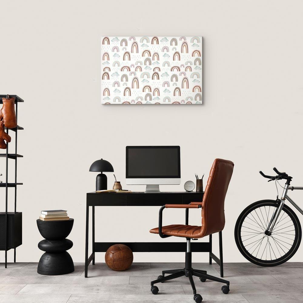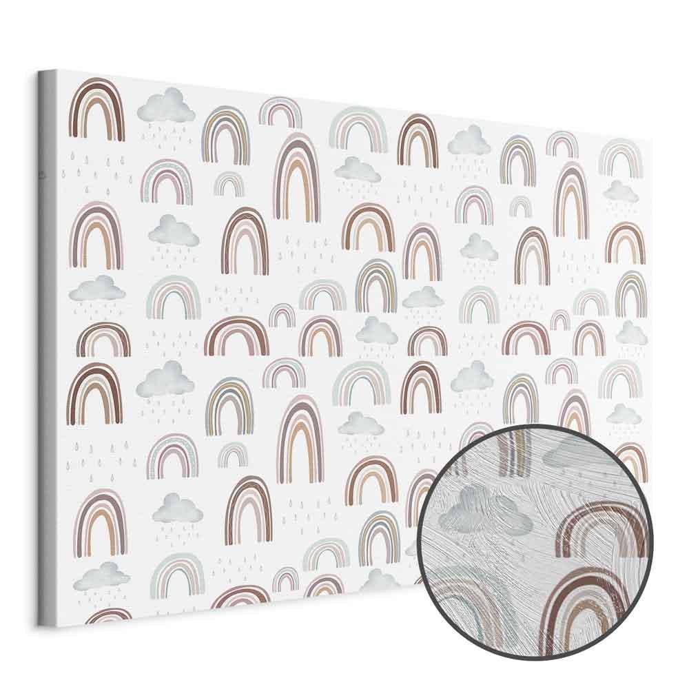Niepowtarzalne obrazy z estetycznymi motywami są idealnym dopełnieniem eleganckiej aranżacji. Przy odrobinie kreatywności można je z łatwością dopasować do wnętrza urządzonego w każdym stylu. Obraz na płótnie „Obraz – Tęcze po burzy – Tęcze różnych wielkości w pastelowej kolorystyce wśród deszczowych chmur w odcieniu szaro-niebieskim” to unikalny element dekoracyjny który jest niemal uniwersalny. Przypadnie do gustu każdemu, kto poszukuje oryginalnych ozdób, aby dopełnić swoją aranżację. Umieść go w swoim wnętrzu, a przekonasz się, że jest już kompletne i nie potrzebujesz już innych dodatków. Nie musisz się obawiać o jakość i wygląd swojej dekoracji. Dostępne w ofercie obrazy na płótnie wiernie odwzorowują detale. Odpowiednio dostosowana rozdzielczość druku gwarantuje intensywność kolorów oraz ostrość prezentowanego motywu. Tego typu produkty to doskonałe rozwiązanie, jeśli wciąż narzekasz na puste miejsce na ścianie i zastanawiasz się, jak je wypełnić. To stylowy element dekoracyjny, dzięki któremu wnętrze staje się wyjątkowo przytulne.