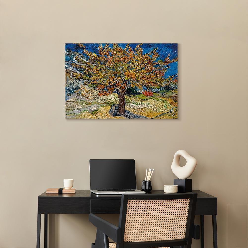 Niepowtarzalne obrazy z estetycznymi motywami są idealnym dopełnieniem eleganckiej aranżacji. Przy odrobinie kreatywności można je z łatwością dopasować do wnętrza urządzonego w każdym stylu. Obraz na płótnie „Obraz – Vincent van Gogh – Drzewo morwowe” to unikalny element dekoracyjny który jest niemal uniwersalny. Przypadnie do gustu każdemu, kto poszukuje oryginalnych ozdób, aby dopełnić swoją aranżację. Umieść go w swoim wnętrzu, a przekonasz się, że jest już kompletne i nie potrzebujesz już innych dodatków. Nie musisz się obawiać o jakość i wygląd swojej dekoracji. Dostępne w ofercie obrazy na płótnie wiernie odwzorowują detale. Odpowiednio dostosowana rozdzielczość druku gwarantuje intensywność kolorów oraz ostrość prezentowanego motywu. Tego typu produkty to doskonałe rozwiązanie, jeśli wciąż narzekasz na puste miejsce na ścianie i zastanawiasz się, jak je wypełnić. To stylowy element dekoracyjny, dzięki któremu wnętrze staje się wyjątkowo przytulne.