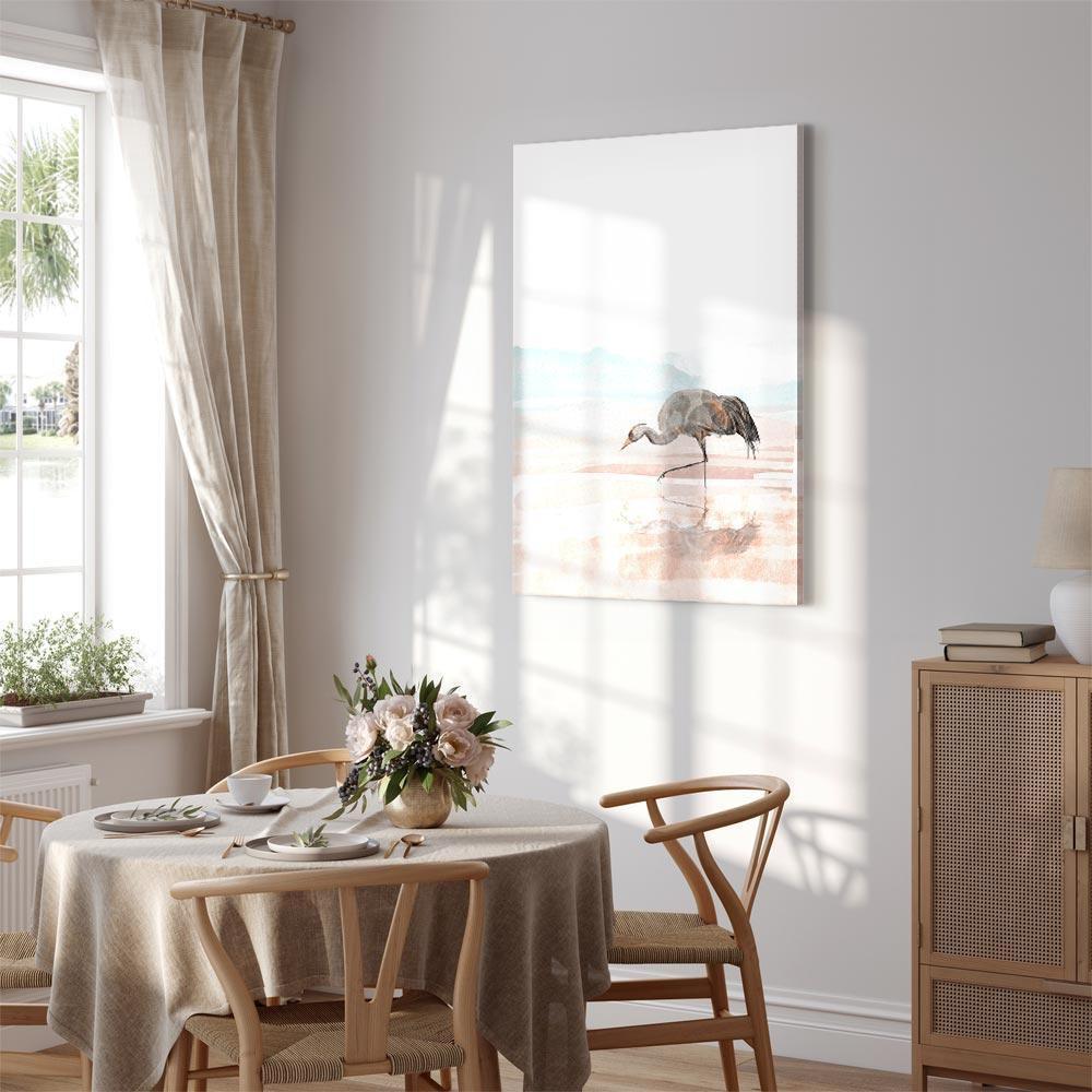 Niepowtarzalne obrazy z estetycznymi motywami są idealnym dopełnieniem eleganckiej aranżacji. Przy odrobinie kreatywności można je z łatwością dopasować do wnętrza urządzonego w każdym stylu. Obraz na płótnie „Obraz – Żuraw o poranku (1-częściowy) pionowy” to unikalny element dekoracyjny który jest niemal uniwersalny. Przypadnie do gustu każdemu, kto poszukuje oryginalnych ozdób, aby dopełnić swoją aranżację. Umieść go w swoim wnętrzu, a przekonasz się, że jest już kompletne i nie potrzebujesz już innych dodatków. Nie musisz się obawiać o jakość i wygląd swojej dekoracji. Dostępne w ofercie obrazy na płótnie wiernie odwzorowują detale. Odpowiednio dostosowana rozdzielczość druku gwarantuje intensywność kolorów oraz ostrość prezentowanego motywu. Tego typu produkty to doskonałe rozwiązanie, jeśli wciąż narzekasz na puste miejsce na ścianie i zastanawiasz się, jak je wypełnić. To stylowy element dekoracyjny, dzięki któremu wnętrze staje się wyjątkowo przytulne.