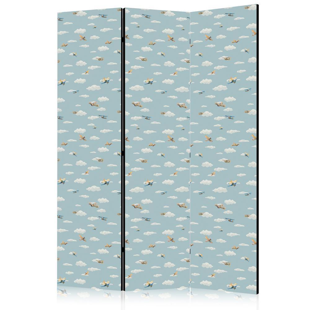 Parawan „Parawan – Ilustracja – żółto – niebieskie samoloty na tle błękitnego nieba” to element wyposażenia dający wiele możliwości. Cechuje go m.in. praktyczność. Jego podstawowym zadaniem jest podzielenie przestrzeni na kilka stref w dyskretny i estetyczny sposób. Parawany pokojowe pozwalają na odseparowanie w ciekawy sposób części przeznaczonej do relaksu od tej wyznaczonej do pracy. Dlatego często znajdują one zastosowanie w salonie. Parawany pozwalają też na sprytne ukrycie czegoś, co nie powinno być w pełni widoczne, przykładowo stojaka z ubraniami czy też suszarki z praniem. Można wykorzystać je więc na różne sposoby, zależnie od własnych potrzeb i wymagań. Dostępne w naszej ofercie parawany pokojowe to flizelinowe płótno zamocowane na drewnianym stelażu. Wyróżniają się bardzo solidną konstrukcją, a do wyboru są dwa formaty: 3-częściowy oraz 5-częściowy. Poszczególne elementy są ze sobą połączone za pomocą metalowych, mocnych zawiasów. Złożenie i rozłożenie parawanu nie stanowi żadnego problemu.