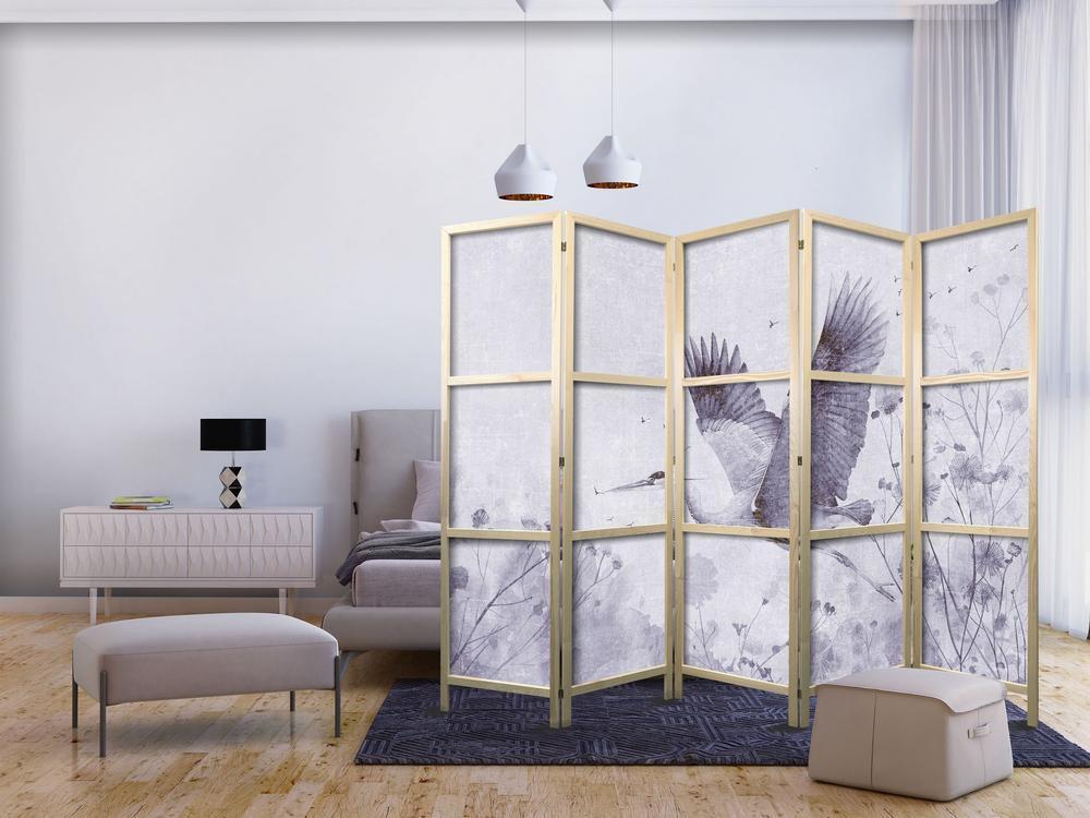 Stylowy i lekki, japoński parawan doskonale nadaje się do podziału pomieszczenia na kilka stref. Dzięki niemu możliwe staje się wyznaczenie części do pracy i oddzielenie jej od części służącej do wypoczynku, bez potrzeby wprowadzania dużych zmian we wnętrzu. Parawan nie zaburza dotychczasowego ładu i nie powoduje chaosu. Wprost przeciwnie, jest dobrym uzupełnieniem aranżacji. Parawan w stylu japońskim to sprawdzony wybór nie tylko do domu lub mieszkania. Coraz częściej znajduje zastosowanie w miejscach użytku publicznego, takich jak salon fryzjerski bądź kosmetyczny, butik, hotel czy gabinet lekarski. Rozłożenie go jest dobrym sposobem na zapewnienie dyskrecji. Utrzymany w japońskim stylu parawan „Parawan japoński – Majestatyczny lot – żuraw w locie w monochromatycznej, chłodnej kolorystyce” wprowadza do wnętrza orientalny klimat, dlatego pomaga w stworzeniu oryginalnej aranżacji. To praktyczny element dekoracyjny, który ma ponadczasowy charakter, a więc nie wyjdzie z mody. Polecamy go każdemu, kto chce stworzyć przytulne i stylowe wnętrze.