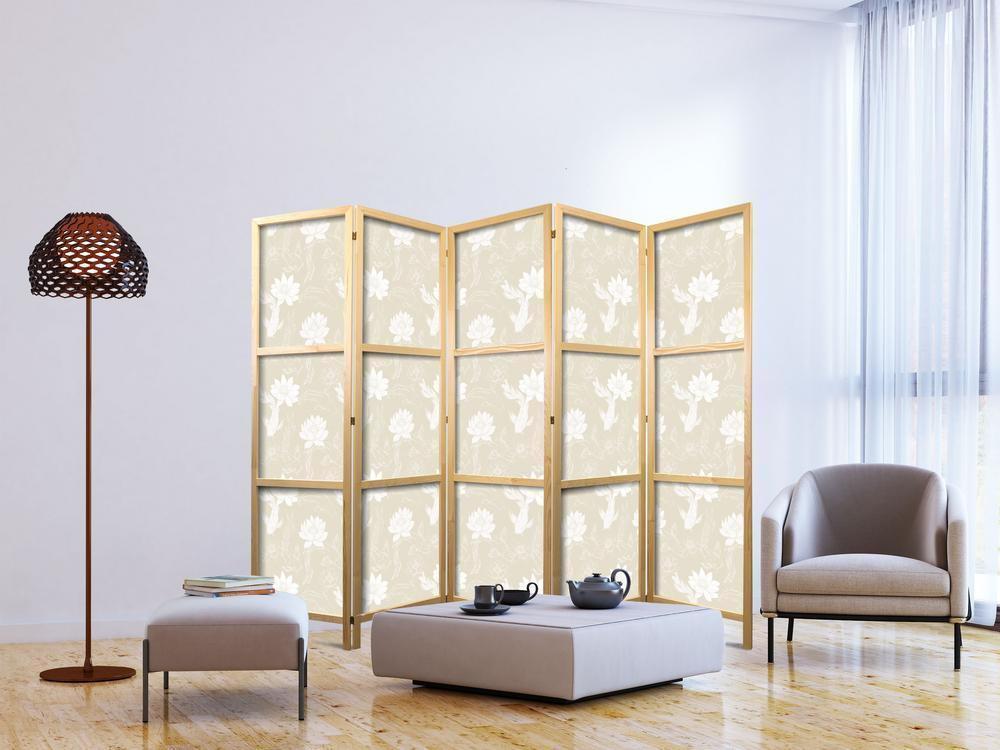Stylowy i lekki, japoński parawan doskonale nadaje się do podziału pomieszczenia na kilka stref. Dzięki niemu możliwe staje się wyznaczenie części do pracy i oddzielenie jej od części służącej do wypoczynku, bez potrzeby wprowadzania dużych zmian we wnętrzu. Parawan nie zaburza dotychczasowego ładu i nie powoduje chaosu. Wprost przeciwnie, jest dobrym uzupełnieniem aranżacji. Parawan w stylu japońskim to sprawdzony wybór nie tylko do domu lub mieszkania. Coraz częściej znajduje zastosowanie w miejscach użytku publicznego, takich jak salon fryzjerski bądź kosmetyczny, butik, hotel czy gabinet lekarski. Rozłożenie go jest dobrym sposobem na zapewnienie dyskrecji. Utrzymany w japońskim stylu parawan „Parawan japoński – Ryby i lilie wodne – Jasne orientalne ryby pływające pośród kwiatów wodnych na delikatnym piaskowo-beżowym tle” wprowadza do wnętrza orientalny klimat, dlatego pomaga w stworzeniu oryginalnej aranżacji. To praktyczny element dekoracyjny, który ma ponadczasowy charakter, a więc nie wyjdzie z mody. Polecamy go każdemu, kto chce stworzyć przytulne i stylowe wnętrze.