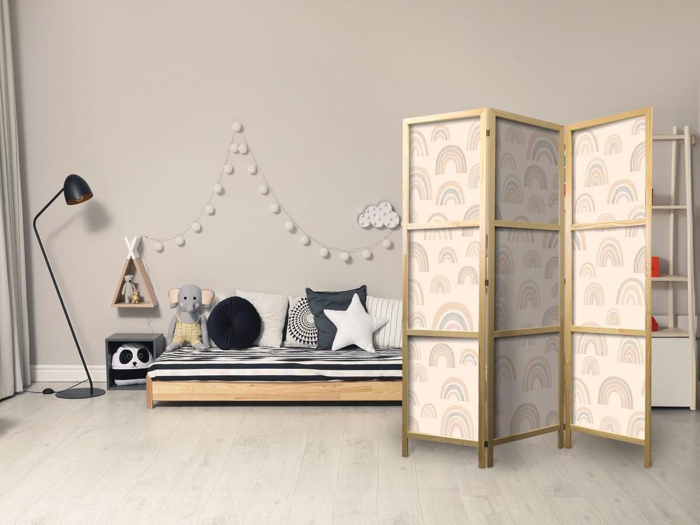 Stylowy i lekki, japoński parawan doskonale nadaje się do podziału pomieszczenia na kilka stref. Dzięki niemu możliwe staje się wyznaczenie części do pracy i oddzielenie jej od części służącej do wypoczynku, bez potrzeby wprowadzania dużych zmian we wnętrzu. Parawan nie zaburza dotychczasowego ładu i nie powoduje chaosu. Wprost przeciwnie, jest dobrym uzupełnieniem aranżacji. Parawan w stylu japońskim to sprawdzony wybór nie tylko do domu lub mieszkania. Coraz częściej znajduje zastosowanie w miejscach użytku publicznego, takich jak salon fryzjerski bądź kosmetyczny, butik, hotel czy gabinet lekarski. Rozłożenie go jest dobrym sposobem na zapewnienie dyskrecji. Utrzymany w japońskim stylu parawan „Parawan japoński – Sierpniowe niebo – różnej wielkości tęcze w stonowanych kolorach” wprowadza do wnętrza orientalny klimat, dlatego pomaga w stworzeniu oryginalnej aranżacji. To praktyczny element dekoracyjny, który ma ponadczasowy charakter, a więc nie wyjdzie z mody. Polecamy go każdemu, kto chce stworzyć przytulne i stylowe wnętrze.