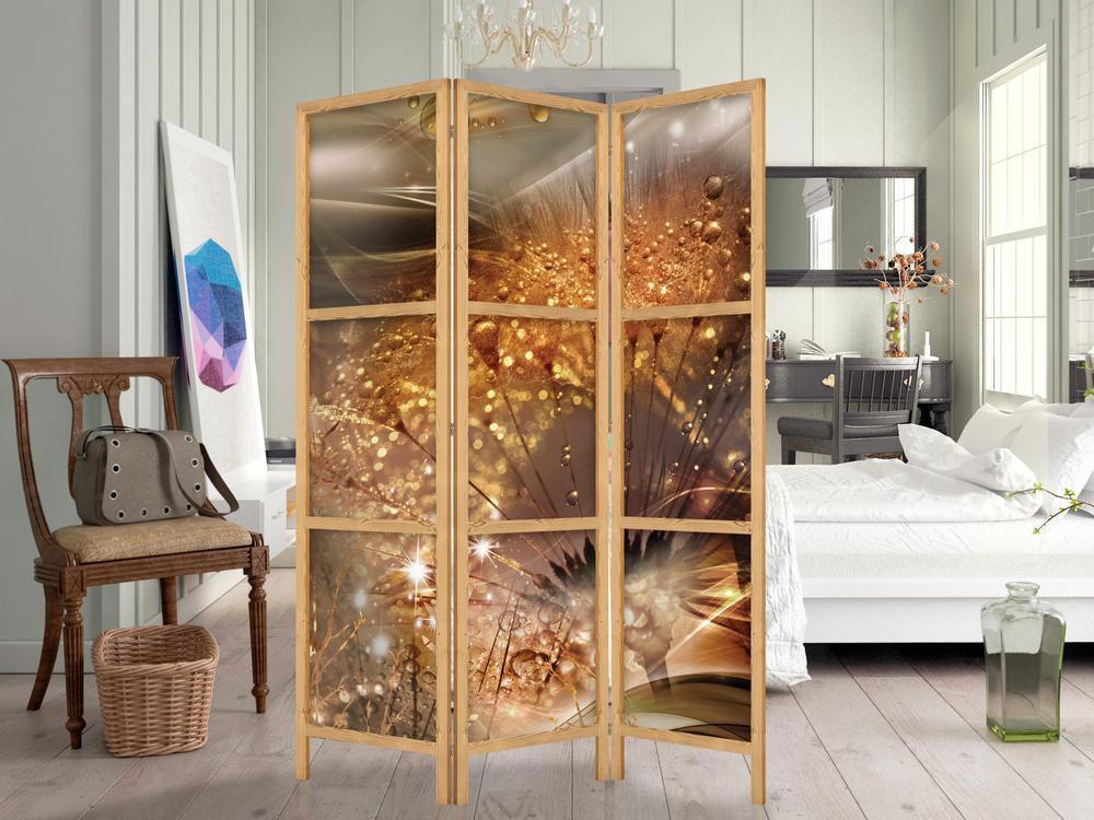 Stylowy i lekki, japoński parawan doskonale nadaje się do podziału pomieszczenia na kilka stref. Dzięki niemu możliwe staje się wyznaczenie części do pracy i oddzielenie jej od części służącej do wypoczynku, bez potrzeby wprowadzania dużych zmian we wnętrzu. Parawan nie zaburza dotychczasowego ładu i nie powoduje chaosu. Wprost przeciwnie, jest dobrym uzupełnieniem aranżacji. Parawan w stylu japońskim to sprawdzony wybór nie tylko do domu lub mieszkania. Coraz częściej znajduje zastosowanie w miejscach użytku publicznego, takich jak salon fryzjerski bądź kosmetyczny, butik, hotel czy gabinet lekarski. Rozłożenie go jest dobrym sposobem na zapewnienie dyskrecji. Utrzymany w japońskim stylu parawan „Parawan japoński – Świat dmuchawców I” wprowadza do wnętrza orientalny klimat, dlatego pomaga w stworzeniu oryginalnej aranżacji. To praktyczny element dekoracyjny, który ma ponadczasowy charakter, a więc nie wyjdzie z mody. Polecamy go każdemu, kto chce stworzyć przytulne i stylowe wnętrze.