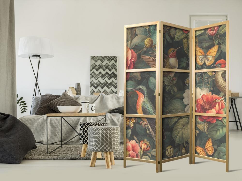 Parawan japoński „Parawan japoński – W ogrodzie botanicznym – kwiaty ptaki i motyle – barwna ilustracja” jest idealną propozycją dla osób zafascynowanych kulturą Kraju Kwitnącej Wiśni. To oryginalny element dekoracyjny, za pomocą którego można odświeżyć każdą aranżację i wprowadzić do niej niepowtarzalny, japoński klimat. Produkty, które są dostępne w naszej ofercie, wyróżniają się przede wszystkim lekkością i elegancją. Parawan w stylu japońskim zachwyca unikalnym, azjatyckim designem, który przypadnie do gustu wszystkim osobom szukającym nietypowych dodatków do wnętrz. Każdy z nich jest dostępny w dwóch wariantach: 3-częściowym oraz 5-częściowym. Parawany pokojowe japońskie można z łatwością dostosować do własnych potrzeb i preferencji. Dotyczy to także wzorów, których jest wiele do wyboru. Oferujemy zarówno delikatne, jak i mocniejsze akcenty. Tym samym parawany japońskie będą doskonale pasować do dowolnej aranżacji i współgrać z pozostałymi elementami wyposażenia, tworząc harmonijną całość.