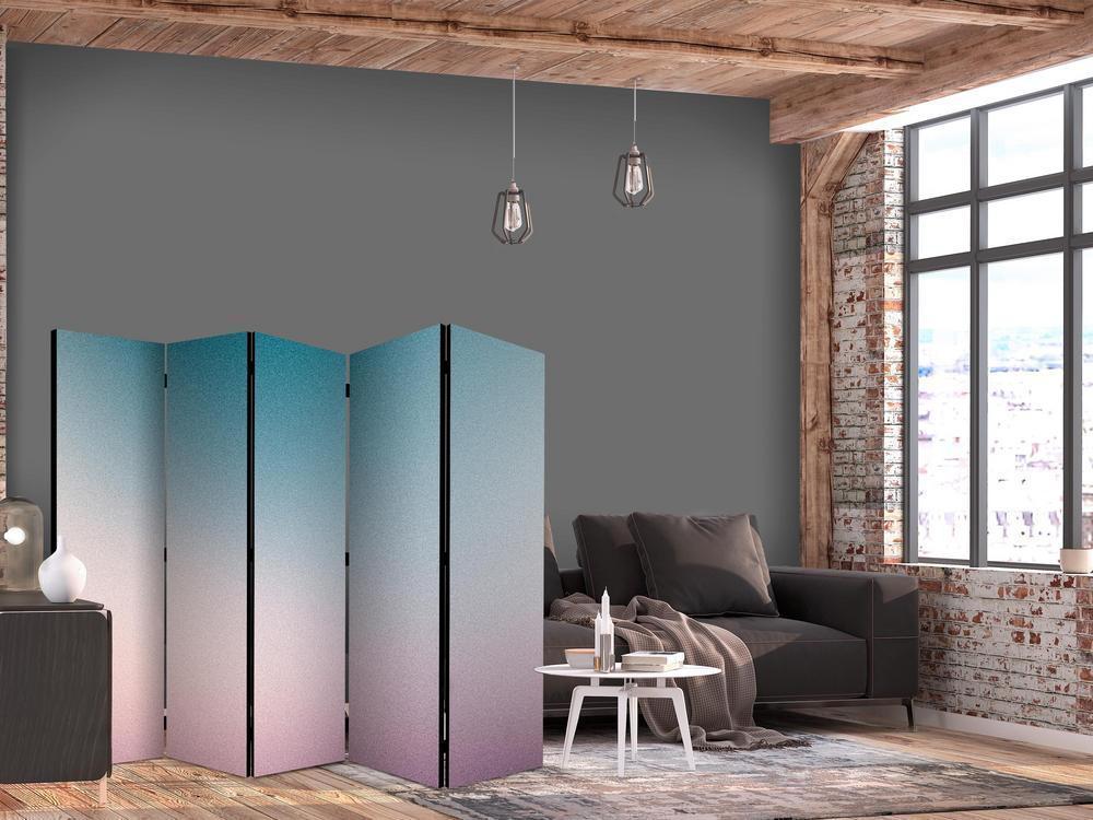 Parawan „Parawan – Nostalgiczny gradient – kompozycja gradientowa w stonowanych kolorach” to element wyposażenia dający wiele możliwości. Cechuje go m.in. praktyczność. Jego podstawowym zadaniem jest podzielenie przestrzeni na kilka stref w dyskretny i estetyczny sposób. Parawany pokojowe pozwalają na odseparowanie w ciekawy sposób części przeznaczonej do relaksu od tej wyznaczonej do pracy. Dlatego często znajdują one zastosowanie w salonie. Parawany pozwalają też na sprytne ukrycie czegoś, co nie powinno być w pełni widoczne, przykładowo stojaka z ubraniami czy też suszarki z praniem. Można wykorzystać je więc na różne sposoby, zależnie od własnych potrzeb i wymagań. Dostępne w naszej ofercie parawany pokojowe to flizelinowe płótno zamocowane na drewnianym stelażu. Wyróżniają się bardzo solidną konstrukcją, a do wyboru są dwa formaty: 3-częściowy oraz 5-częściowy. Poszczególne elementy są ze sobą połączone za pomocą metalowych, mocnych zawiasów. Złożenie i rozłożenie parawanu nie stanowi żadnego problemu.