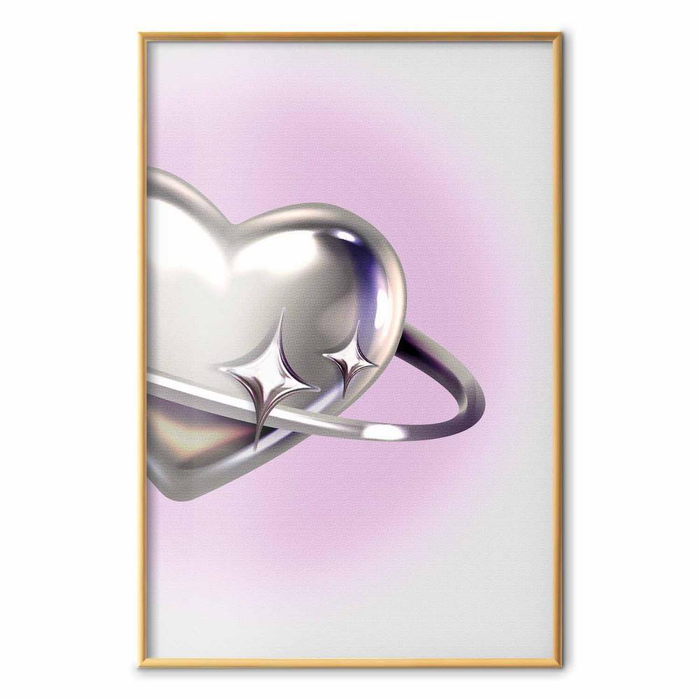 Plakat – Kosmiczne Serce – srebrne serce z pierścieniem na fioletowym tle